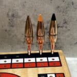 Unique bullet cribbage pegs made with actual 30 caliber projectiles. They are available as normal FMJ (no paint), armor piercing (Black Tip), or tracer (orange tip).