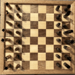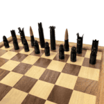 Unique chess / checkers set handmade entirely from real spent 50 BMG bullet casings. You will receive the full 32 piece set with 16 pieces being clear coated brass and 16 pieces being black coated. We do not suggest using this set with the chess boards we currently offer. Squares are best 1-1/2″ or larger.