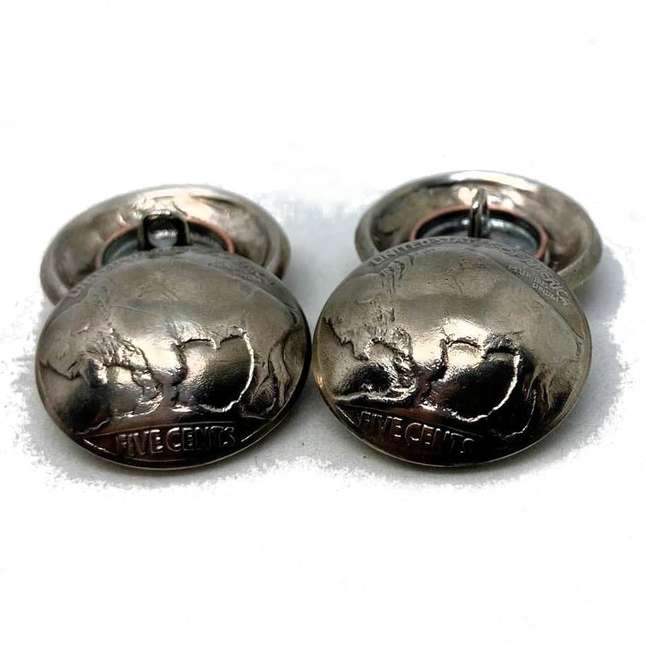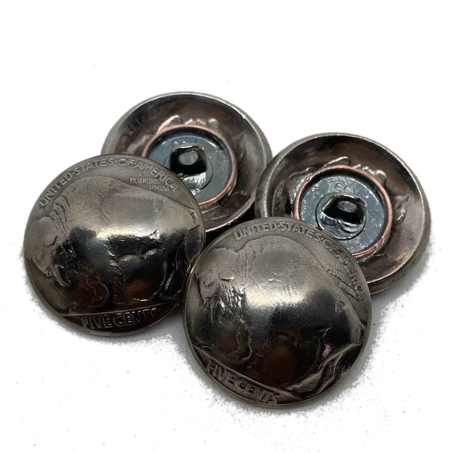 These classic looking buttons have been made from Buffalo Nickels (minted between 1913-1938) are ready to be added to give your suit or fancy jacket a splash of style. Options are for which side of the coin you would like to see, the buffalo or the Indian.