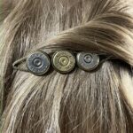 Hair pin / clip made with 3 caliber headstamps cut from casings of your choice. Headstamps WILL vary from pictures, but we will match them to make them look balanced. We do our best to pick sharp good looking headstamps for these.