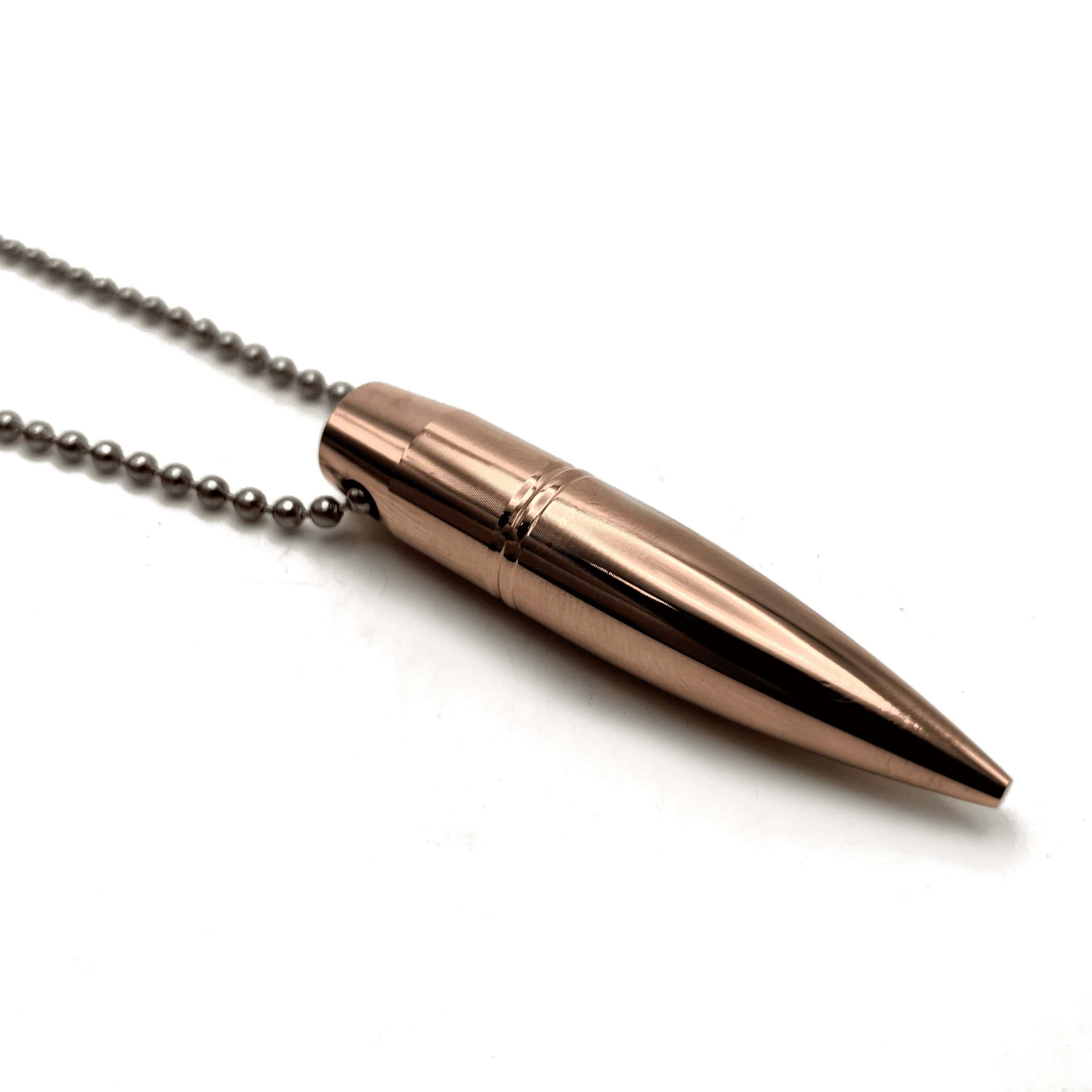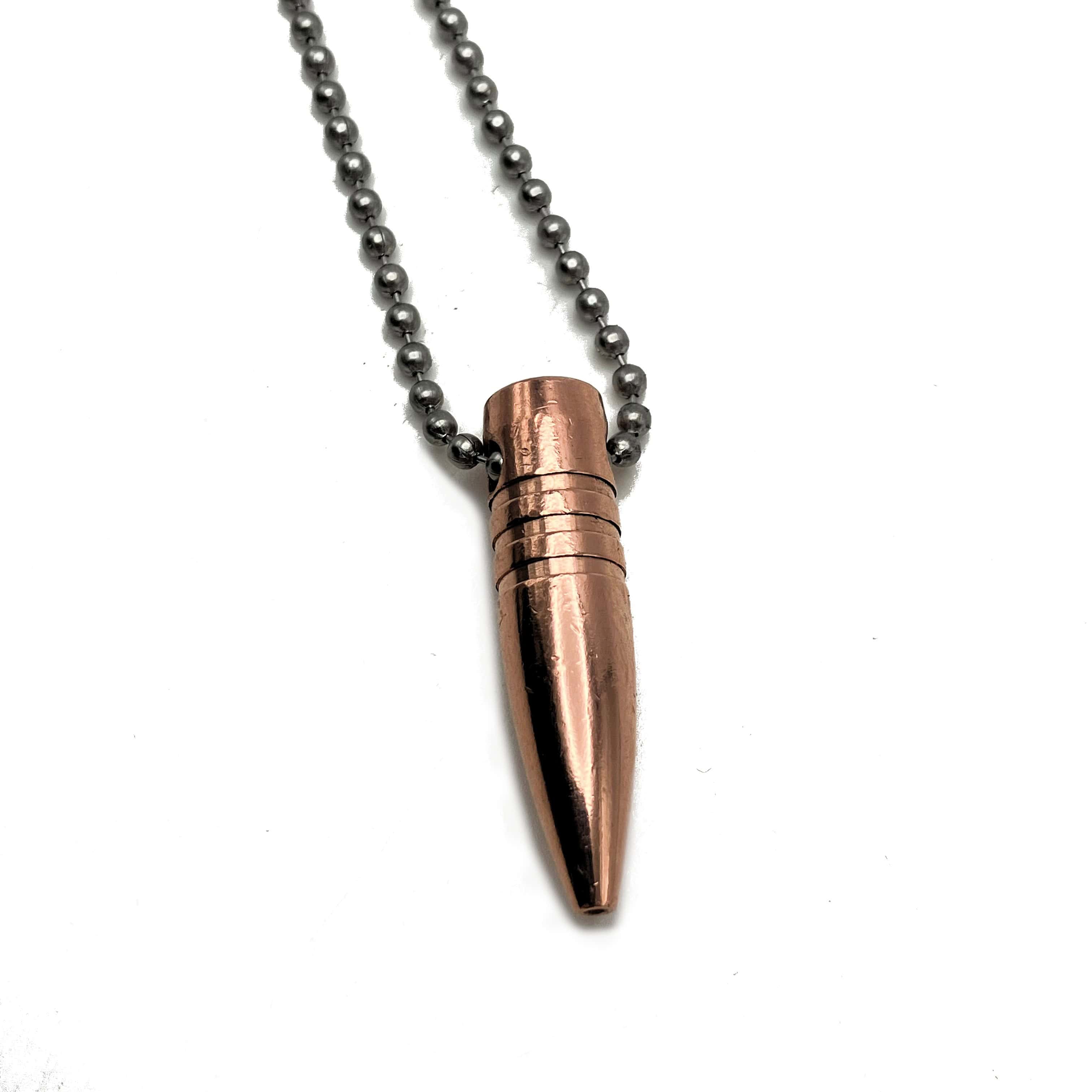 Handmade necklace or keychain made from actual projectiles (just the tip) that have not been fired for the caliber round of your choice.