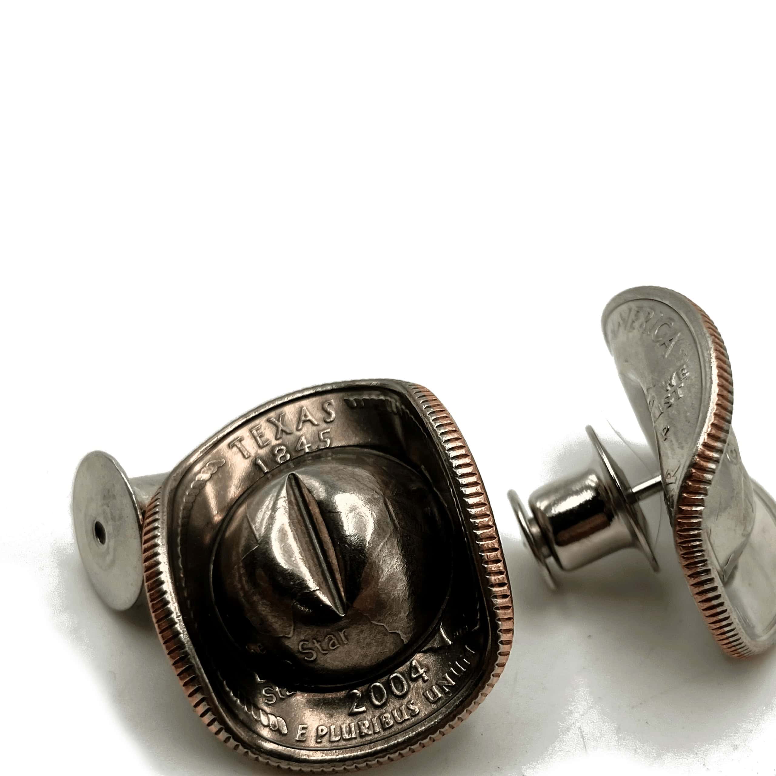 Handmade cowboy hats made from quarters into pins. These can be made from any state quarter you want.