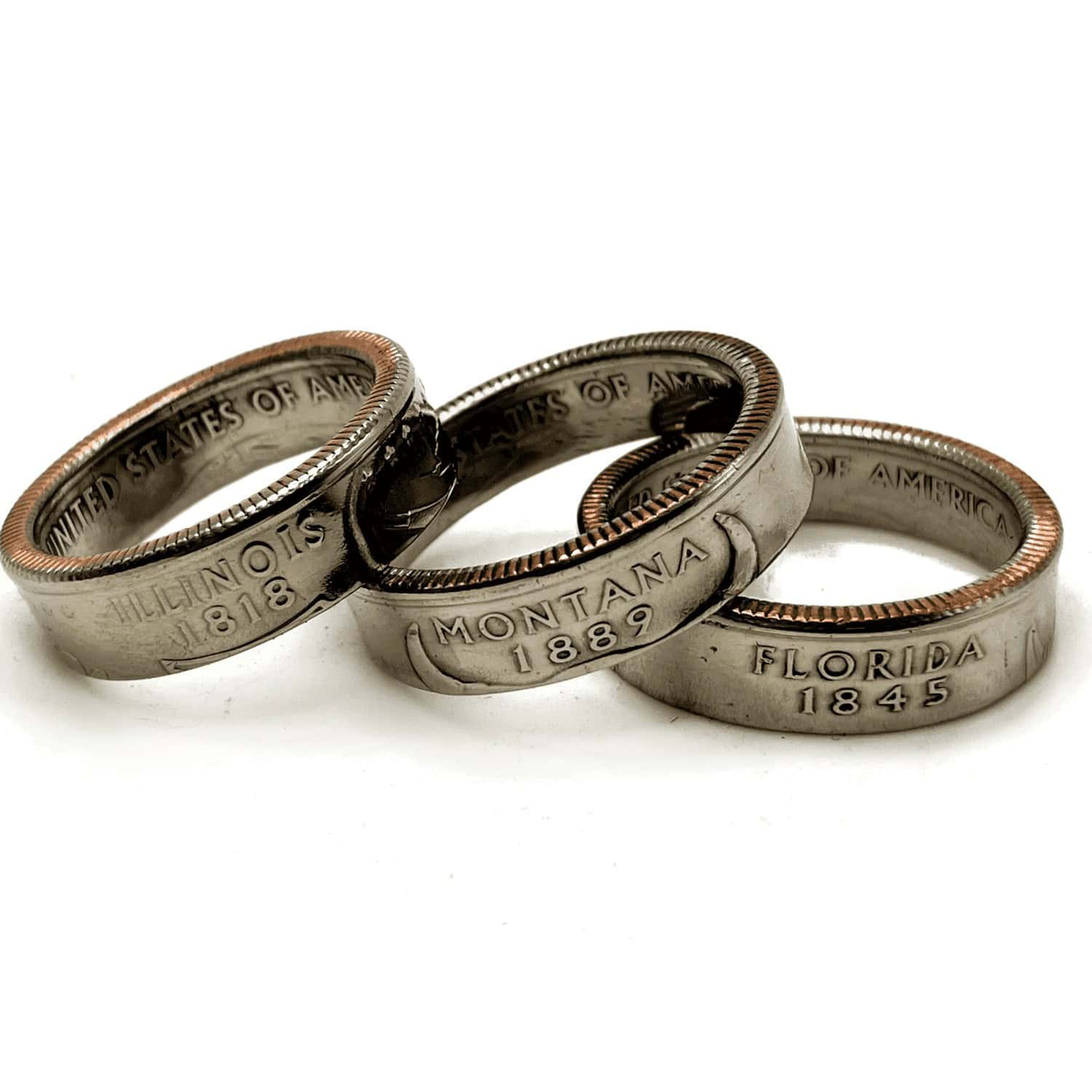 IMPORTANT: This ring option is made from normal copper nickel coins. If you have a high sensitivity to metals, we suggest purchasing our silver coin ring version instead. The copper in these rings can leave a green residue on your skin.Â