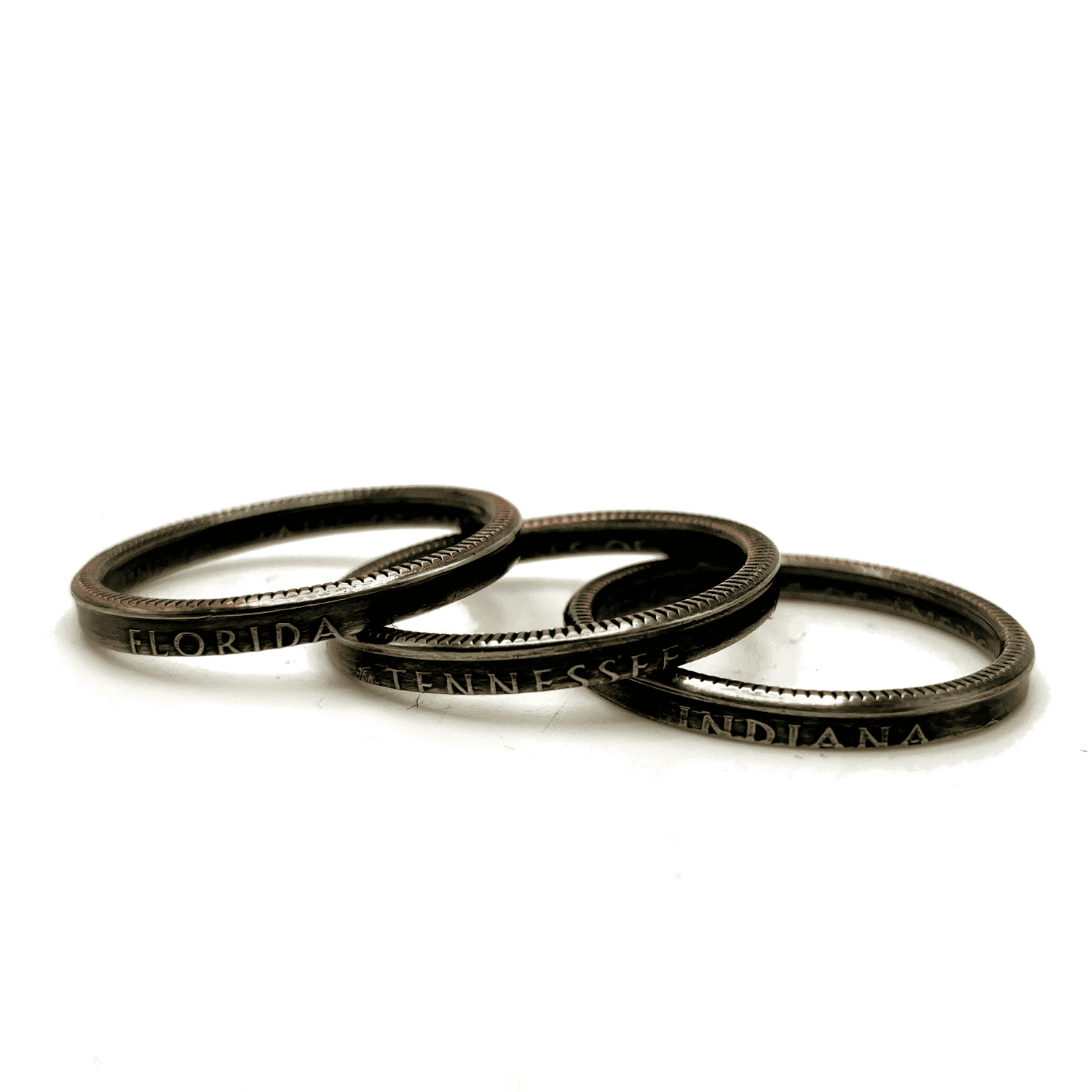 Handmade rings made from a real US statehood quarter. We use uncirculated coins to have the best detail in design possible.